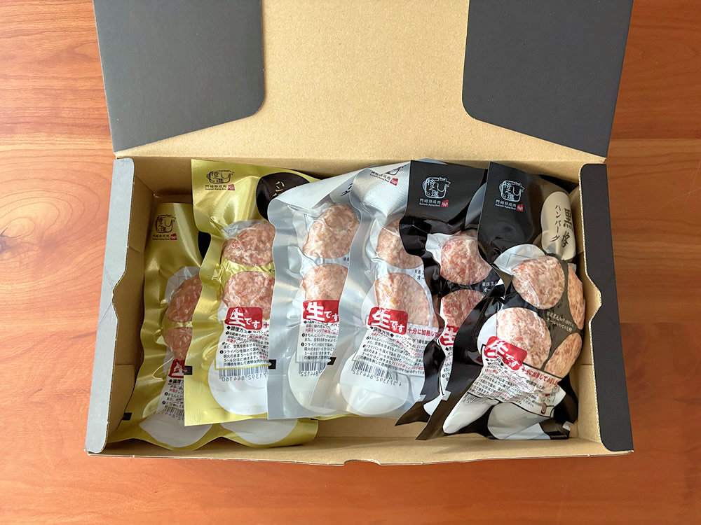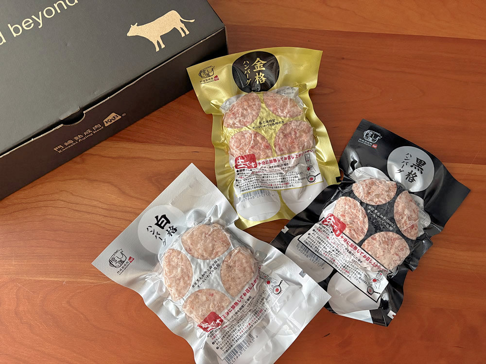 今回は、こちらの黒格/白格/金格の3種のハンバーグが各2個ずつセットになった商品を購入しました。